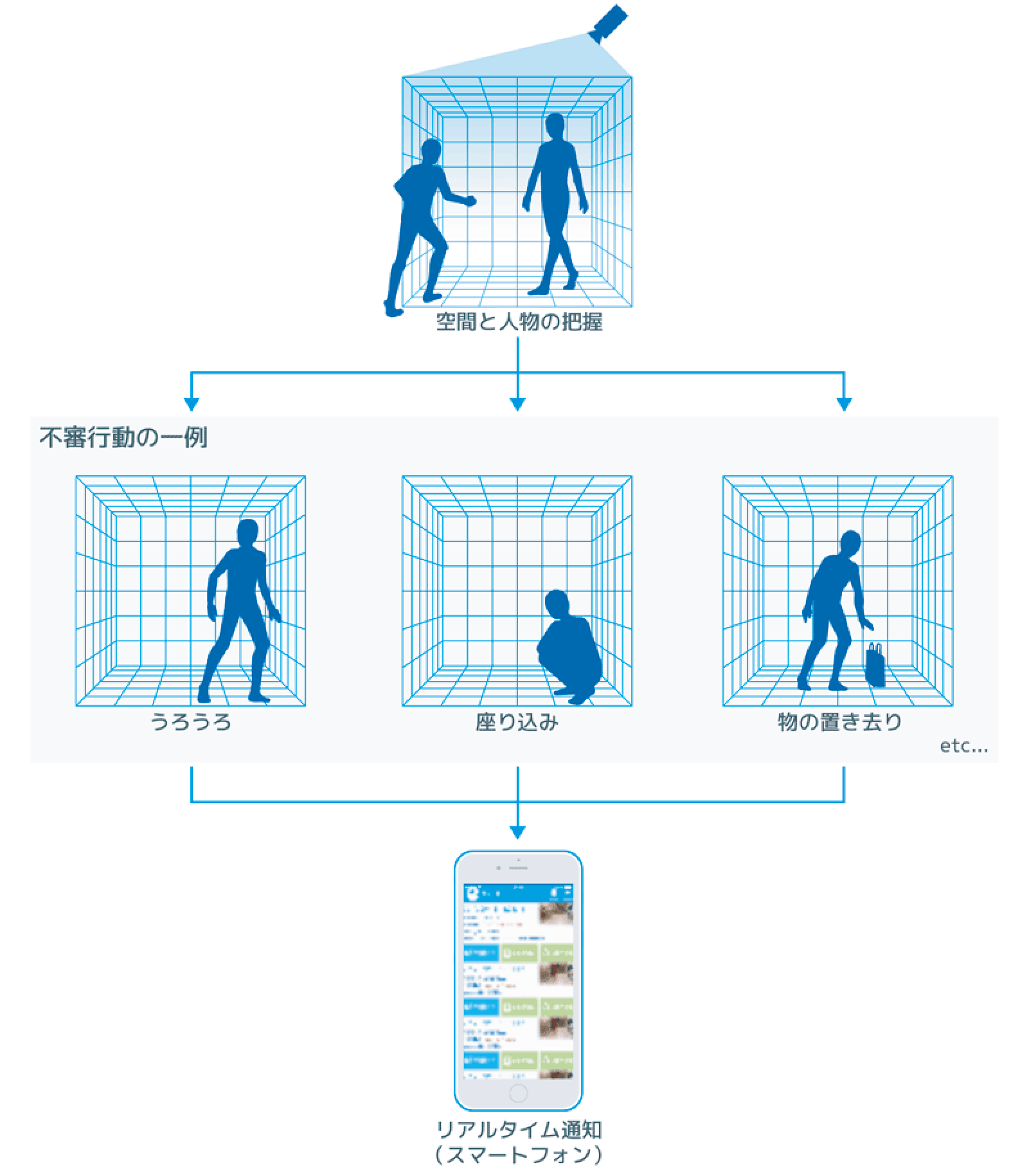 - アースアイズのAIソリューションは、独自の基礎技術により、「人の感覚」に限りなく近い情報処理を行うことによって、「人」に代わって「危険」な事象の予兆をいち早く検出して、事件・事故を未然に防ぐソリューションです。