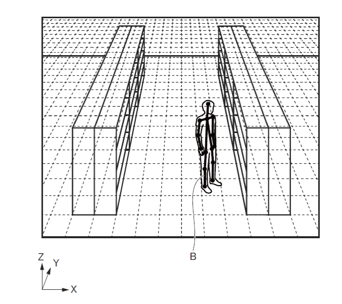 - コンピュータは、一般的な監視カメラで取得可能な撮影画像(二次元(2D)画像)から、実際の3次元(3D)空間内での人や物の位置を正確に把握することはできません。アースアイズの「3D空間把握技術」は、独自の座標設定手段によって3次元(3D)座標を設定して仮想的3D空間を作り出し、2D画像からはコンピュータが直接的には把握できない実際の3D空間内での人や物の位置を正確に特定する技術(特許第6581280号)です。