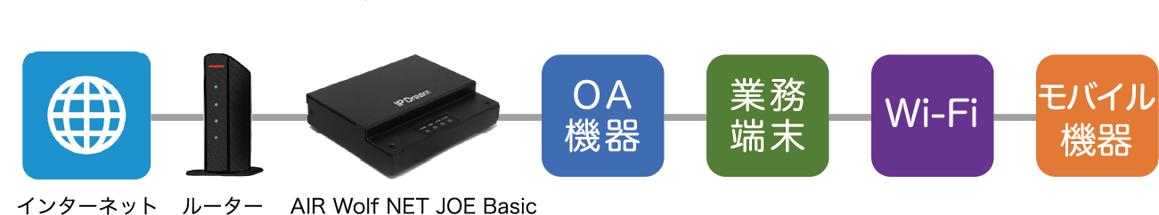 - ● 回線丸ごと漏れなく防御するので、ネットワーク接続のプリンタや複合機などのIOT機器も保護。